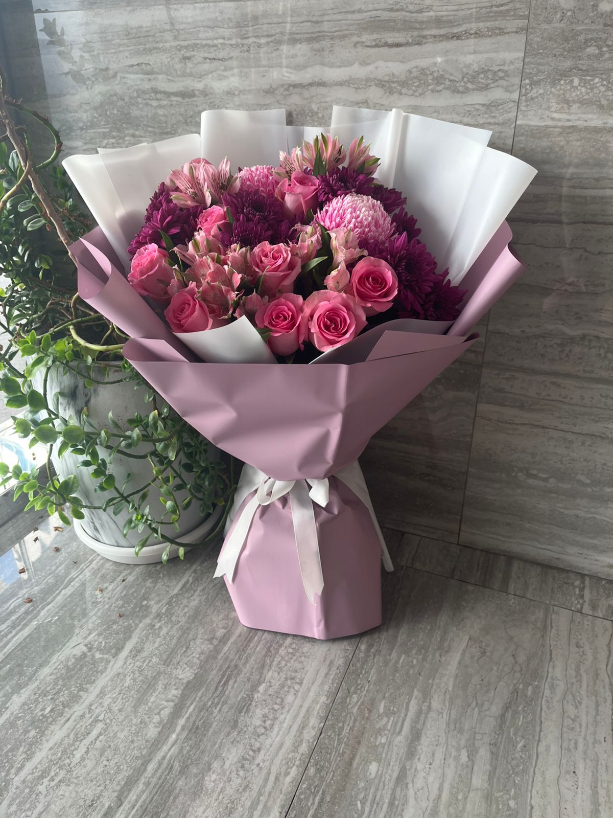 The Purple Bliss Bouquet is a captivating blend of rich violet hues and soft floral textures, designed to evoke calm elegance and quiet luxury. Each bloom is carefully arranged to create depth and harmony, resulting in a bouquet that feels both enchanting and refined. A timeless expression of beauty with a modern, graceful touch.